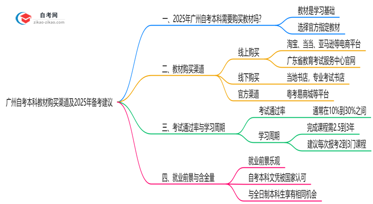 考生可以通过多种渠道购买2025年广州自考本科的教材: