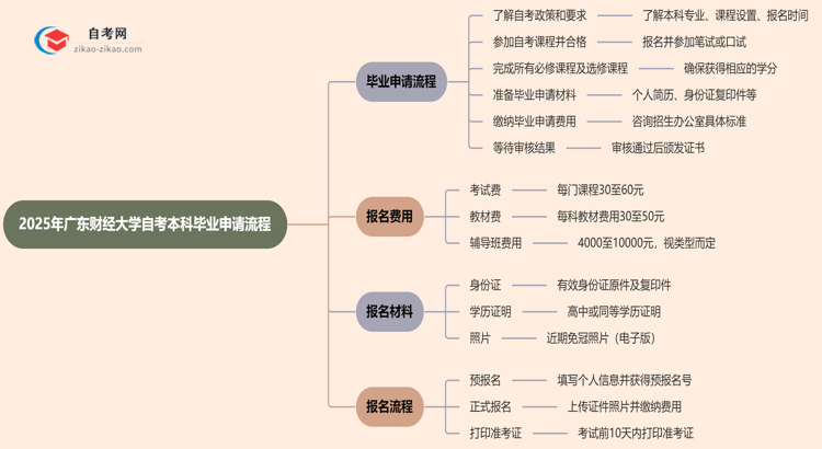 2025年广东财经大学自考本科的毕业申请流程主要包括以下几个步骤: