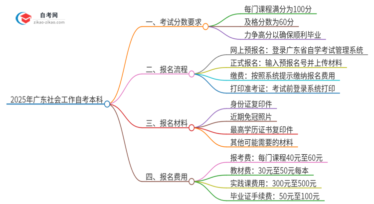 2025年广东社会工作自考本科的报名费用主要包括以下几项: